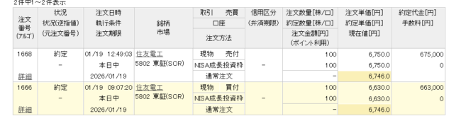[100株 6,630円で購入 6,750円で売却]