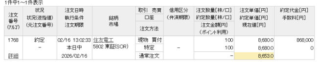 【今日の約定状況】
