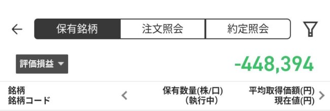 含み損は相変わらず大きい(;・∀・)