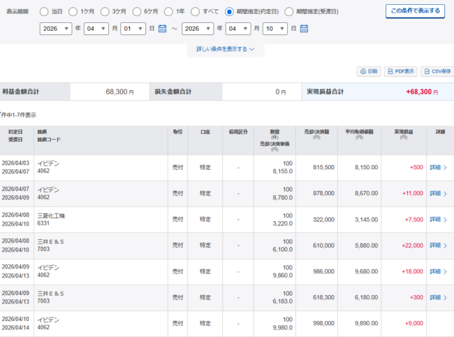 ① 4/1(火)~4/10(金)のトレード概要・損益まとめ