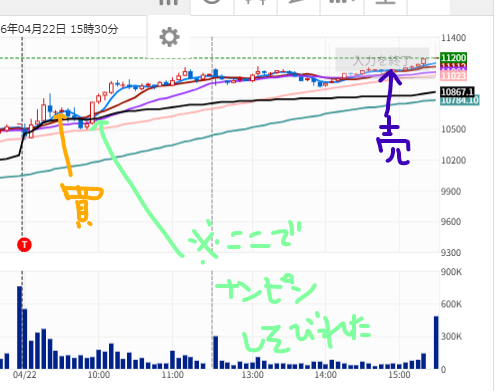 もし追加100株が入っていれば、今日の利益は倍近く取れていたはずで、その点はやっぱり悔しいで。