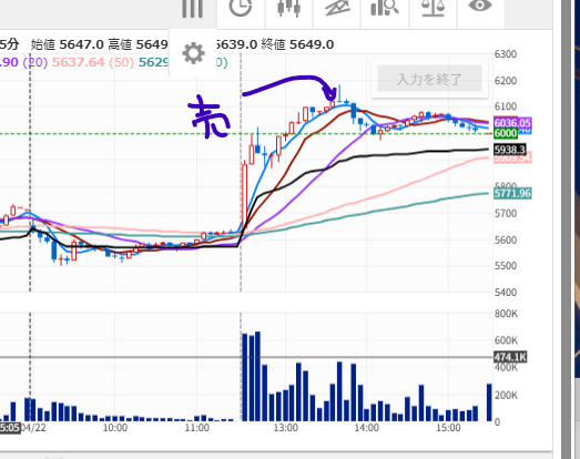 今日は保険のための売り指値は入れず、画面の前で辛抱強く「売りタイミング」を待ちました。